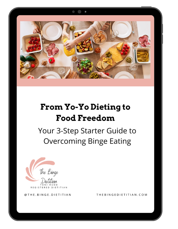 I’m Toni, The Binge Dietitian and I’ve created this 8-page starter guide overcoming binge eating, especially for you.